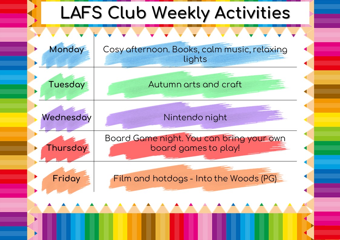 Please see the Lafs Activity Timetable below, for our plans for the week commencing the 16th September. We are looking forward …